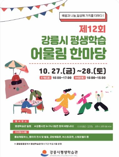 『제12회 강릉시 평생학습 어울림 한마당』이 오는 27일부터 28일까지 “배움과 나눔, 일상에 가치를 더하다!”라는 주제로 평생학습관 일원에서 개최된다.
