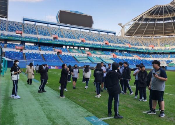 경기장을 방문한 학생들은 2002월드컵기념관, 감독실, 락커룸, VIP실 등을 둘러보고, 인터뷰 체험도 했다. 이번 프로그램에 참여한 한 학생은“축구가 좋아 관련 직업을 갖고 싶었는데, 선수 트레이너, 피지컬 코치와 같이 다양한 직업이 있다는 것을 알게 됐다.”라며 “스포츠 기자가 되어 손흥민 선수를 꼭 인터뷰하고 싶다.”라고 말했다.