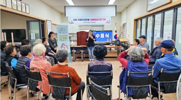 수원시 권선구보건소는 지난 24일 오목천 경로당에서 평동 치매안심마을 ‘똑똑 두뇌활동교실’ 수료식을 열었다.