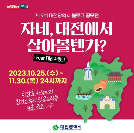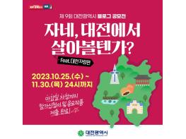 대전시가 ‘살고 싶은 대전, 자랑하고 싶은 대전’을 널리 알리기 위한 ‘제9회 대전광역시 블로그 공모전’을 연다.