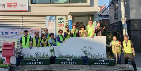 구포1동 행정복지센터는 마을복지계획 중 하나인 ‘활짝! 꽃 피는 구일’의 마지막 활동으로 지난 23일 계절 초화를 이용하여 동사 주변 꽃길을 만들었다고 전했다.