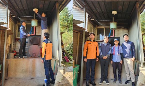 합동설치 대상은 산림과 인접해 산불화재 시 연소확대 우려가 높고, 고령·거동불편 등의 이유로 자력으로 화재 소화·대피가 어려운 가구 중 화목보일러를 사용하는 가구로 선정했다.