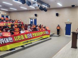 아파트 입주자대표회의 구성원(임원, 동별 대표자 등) 150여 명이 안동시 공동주택 운영 교육을 위해 모인 가운데 핸드배너를 들고 의대 유치를 염원하는 구호를 외치며 간절함을 호소했다.