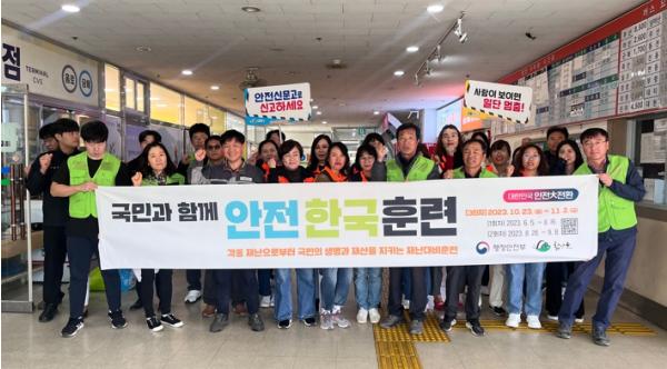 ‘2023년 재난대응 안전한국훈련’ 및 ‘일상이 안전한 대한민국, ‘안전하세요’ 캠페인‘ 홍보를 위해 마련된 이날 캠페인에는 함안군, 함안지방공사, 재난안전봉사대, 안전보안관 등 30여 명이 참여했다.