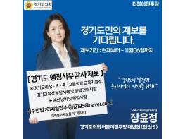 경기도의회 교육기획위원회 장윤정 의원(더불어민주당, 안산3)은 2023년도 행정사무감사를 앞두고 도민들을 대상으로 공개제보를 받는다고 SNS 등을 통해 알렸다.