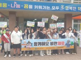 캠페인에는 공주시 보건소 직원과 ‘함께해요 비만제로’ 프로그램에 참여하고 있는 공주중동초등학교 학생, 교직원 등 200여명이 참석했다.