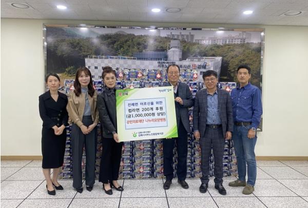강민의료재단 나누리요양병원은 24일 김해시복지재단 서부노인종합복지관을 방문하여 진례면 지역 어르신들을 위한 후원물품 컵라면 200박스 전달식을 가졌다. 나누리요양병원은 진례면 지역 경로당 10개소 어르신들을 대상으로 컵라면 후원뿐만 아니라 기초건강 검사 및 상담 등 건강관련 프로그램을 진행할 예정이다.