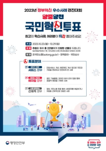 이번 경진대회는 전 행정기관과 공공기관에서 제출한 사례 중 1차 전문가 심사와 2차 온라인 국민심사를 거쳐 최종 시상 대상이 결정된다.