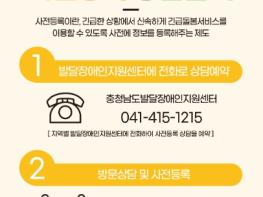 발달장애인 긴급돌봄사업 사전등록과 사전체험을 희망하는 경우 충청남도발달장애인지원센터로 전화 또는 방문(천안시 서북구 동서대로 163)해 상담을 받을 수 있다.