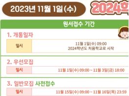 채숙희 유초등교육과장은 “2024학년도에도 공정하고 투명한 유아모집?선발이 이루어질 수 있도록 적극 노력하겠다.”며, “유치원 입학을 신청하고자 하는 학부모들은 희망 유치원의 모집 안내와 유아모집 일정을 사전에 확인 후 참여 바란다.”고 말했다.
