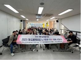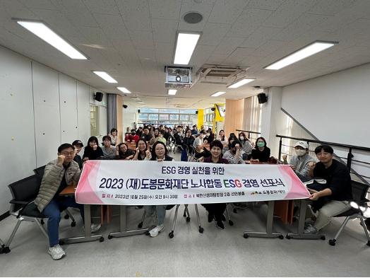 도봉구 도봉문화재단은 지난 10월 25일 북한산생태탐방원 2층 선인봉홀에서 ‘ESG·윤리·인권경영 선포식’을 열고, 모든 임직원이 지속가능한 경영기반 마련을 위해 ESG경영을 적극적으로 실천할 것을 선언했다.