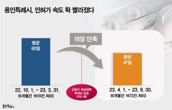용인특례시는 지난해 10월부터 올해 9월 말까지 1년 사이 건축 인허가 민원 처리 기간을 건당 평균 18일 앞당겼다고 26일 밝혔다.