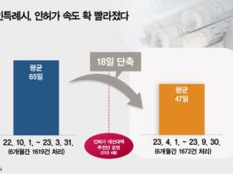 같은 기간인 지난해 10월 1일부터 올해 3월 31일까지 접수된 1619건의 인허가 민원을 처리하는데 건당 평균 65일이 소요된 것과 비교하면 평균 18일 단축된 셈이다.