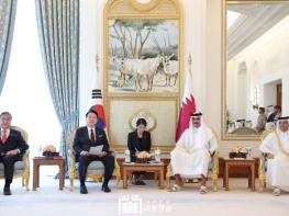 대통령은 카타르 측의 따뜻한 환대에 사의를 표하고, 내년도 양국 수교 50주년을 앞둔 시점에서 한국 대통령으로서는 처음으로 카타르를 국빈 방문하게 된 것을 뜻깊게 생각한다고 말했다. 대통령은 이번 방문을 계기로 양국이 지난 50년의 관계 발전 성과를 돌아보고 미래 50년의 공동 번영을 함께 준비해 나가기를 바란다면서, 한국은 카타르가 ‘국가 비전 2030’을 통해 국가 발전을 추진하는 과정에서 든든한 동반자가 될 것이라고 했다.