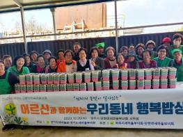 파주시?새마을부녀회는?10월 25일 탄현면 새마을부녀회 사무실에서 김진우 탄현면장, 탄현면 새마을부녀회, 지역 어르신 등 40여 명이 참여한 가운데 ‘우리동네 행복밥상’ 사업을 실시했다.