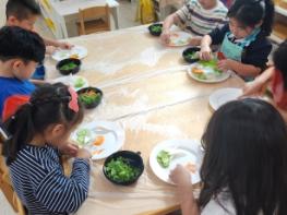 이번 교육은 지난 10일에 시작해 오는 30일까지 진행할 예정이다. ‘채소와 친해지기’라는 주제로 진행이 되며 재료를 직접 썰고 찢으면서 오감을 만족시키고 채소와 친밀감을 가질 수 있도록 유도하여 편식 교정에 도움을 주고 건강한 식생활 습관을 학습할 수 있도록 교육하고 있다.