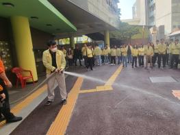 이어 소화기와 옥내소화전 사용법에 대한 교육과 시연 훈련이 진행됐으며, 하안119안전센터장의 훈련 강평으로 소방 훈련을 종료했다.