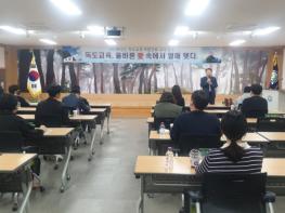교육은 독도 의용군 수비대기념관 조석종 관장을 강사로 초청해 올바른 독도 수호 의식과 독도를 지키기 위해 애쓴 독도 의용군 수비대의 업적을 되새겨보는 시간 등으로 진행됐다.