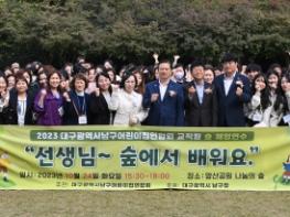 대구광역시 남구청은 지난 24일, 앞산공원 나눔의 숲에서 관내 어린이집 보육 교직원 100여명을 대상으로 숲체험 연수를 실시했다고 26일 밝혔다.