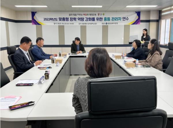 영양교육지원청은 2023년 10월 23일 영양교육지원청에서 관내 중?고등학교 교감을 대상으로 2023학년도 영양교육지원청 맞춤형 장학 관리자 연수를 실시했다.