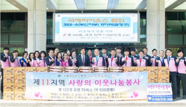 부산시 금정구는 지난 25일 국제라이온스협회 355-A(부산)지구 11지역에서 전 회원들과 함께 이웃돕기 성품 500만 원 상당을 기탁했다고 밝혔다.