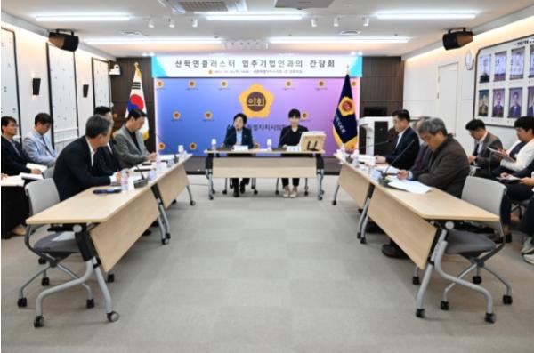 세종특별자치시의회 산업건설위원회는 26일 의회 청사 대회의실에서 산학연클러스터 지원센터 입주기업인과의 소통을 통해 다양한 애로사항을 청취하고, 개선 방안 등을 논의하기 위해 간담회를 개최했다.
