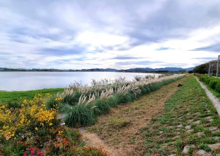 27일 불암동 행정복지센터에 따르면 불암장어타운 인근 서낙동강 변 유휴부지 1,000㎡(불암동 451-7 일대)에 작년부터 팜파스그라스와 좁은잎해바라기를 심어 군락을 조성했다. 현재 개화철을 맞아 만개한 꽃들이 서낙동강의 여유로운 풍경과 어우러져 시민들에게 깊어가는 가을을 선물하고 있다.