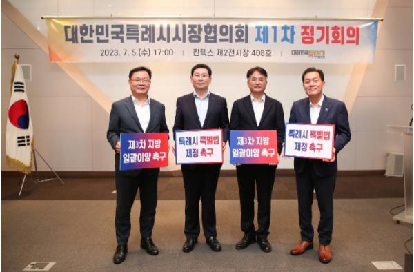 지난 7월 킨텍스에서 특례시 권한 확보를 위한 대한민국특례시시장협의회 회의가 열렸다. 대한민국특례시시장협의회는 자치분권 확립과 대한민국 지방시대 구현을 위해 인구 100만 4개 특례시(고양·수원·용인·창원)의 시장이 모여 설립한 단체다. 매년 정기적으로 회의를 열어 특례시 권한 확보를 위한 안건을 선정해 추진하고 있다.