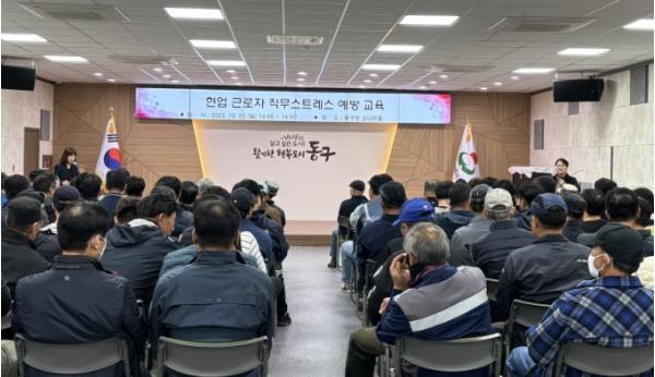 인천 동구는 23일 구 소속 현업근로자를 대상으로 직무스트레스 예방교육을 실시했다.