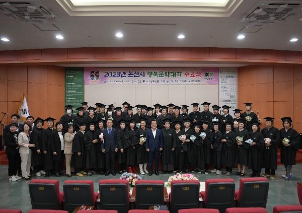 ‘논산시민 행복시대’를 이끌어 갈 인적 인프라 마련을 목표로 지난 8월부터 3개월간 치러진 2023년 행복문화대학이 모든 과정을 마치고 수료식을 진행했다.
