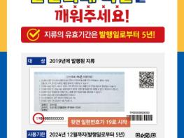 2019년 발행된 지류형은 상품권 뒷면의 일련번호가 ‘19’로 시작되며 사용기한이 내년 12월까지다.