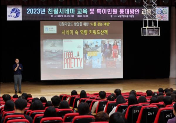 인천시 남동구는 최근 구청 대강당에서 공직자 400여 명을 대상으로 ‘친절 시네마 교육 및 특이민원 대응방안 교육’을 실시했다고 27일 밝혔다.