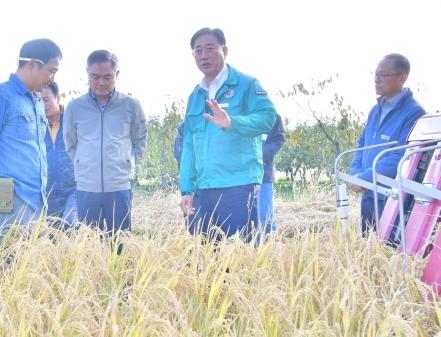 27일 북이면 가루쌀 수확 현장을 찾은 김한종 군수는 “가루쌀 재배가 작금의 쌀 소비 감소 및 과잉생산 문제를 완화해줄 것으로 기대한다”면서 “계획대로 활성화할 수 있도록, 농업 현장의 목소리에 항상 귀기울이겠다”고 말했다.