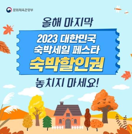 더욱 자세한 내용은 한국관광공사 대한민국구석구석 누리집 내?‘2023 대한민국 숙박세일 페스타’?안내 페이지에서 확인하세요!