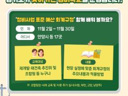 경기도가 11월 2일부터 30일까지 안양시 등 17곳에서 재개발?재건축 조합을 대상으로 관련 회계규정 등을 교육하는 ‘찾아가는 정비학교’를 운영한다.