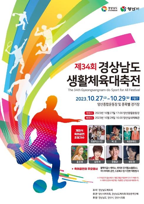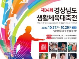 330만 경남도민이 화합하고 생활체육 동호인들의 대축제인 ‘제34회 경상남도 생활체육대축전’이 27일 오후 5시 50분, 양산종합운동장에서 화려한 개회식을 열고 3일간의 열전에 돌입한다.
