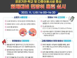 가상 화재 발생에 따른 화재 발생 신고, 상황전파 및 대피 등 대응훈련으로 진행되며, 유도요원의 안내에 따라 건물 밖이나 대피장소로 신속히 이동 후 화재 시 국민행동요령, 심폐소생술 등의 교육이 진행될 예정이다.
