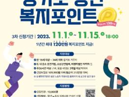 경기도가 도내 청년 노동자들의 복리후생 개선과 일자리 미스매치 해소를 위한 ‘청년 복지포인트’ 3차 참여자 1만 명을 11월 1일부터 15일까지 공개 모집한다.