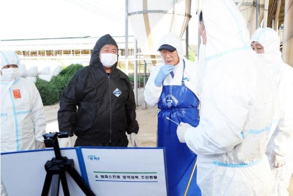 이와 함께 당초 29일부터 5박 6일간 남북교류협력 지방정부협의회 소속 지방정부 기초자치단체장과 함께 하기로 했던 독일 베를린 공무출장을 전격 취소하고, 29일 럼피스킨병 백신 접종을 진행한 조리읍 대원리 소재 농가를 방문해 백신 접종 현장을 살펴보고, 현장 대응에서의 애로사항을 청취하는 한편 수의사와 축산 농가 등 방역 전문가들의 노고를 치하하고 격려했다.