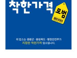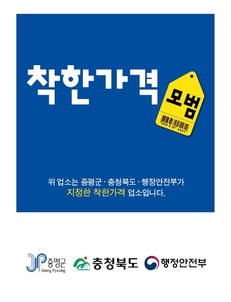 착한가격업소는 경기불황 등 어려운 여건 속에서도 저렴한 가격과 차별화된 서비스로 소비자에게 만족을 주는 업소 중 행정안전부 지침에 따라 증평군이 지정한 업소로, 군에는 현재 12개소가 지정돼 있다.