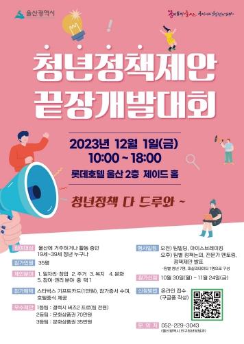 울산시는 오는 12월 1일 롯데호텔에서 개최되는 ‘청년정책 제안 끝장개발대회’ 참가자를 모집한다고 밝혔다.