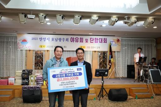 경기도 안양시 호남향우회 박귀종 회장을 비롯한 350여 향우들이 지난 28일 고창군에 고향사랑기부금 200만원을 기탁했다.