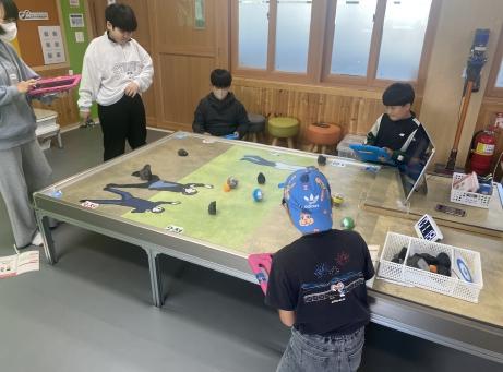 프로그램 세부 활동은?AI?터틀봇 구슬치기, AI?바둑, AI?자치기, AI?햄스터 줄고누로 구성됐고 이는 전통 놀이에 소프트웨어와 인공지능을 적용한 활동으로 학생들이 체험활동에 큰 흥미를 느낄 수 있도록 했다.