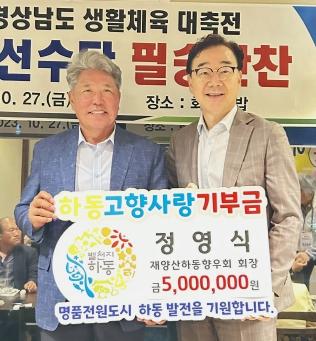 양산에서 세영건설을 운영하는 정영식 대표는 재양산하동향우회장을 맡아 지난 27일 양산에서 개최된 제34회 경남생활체육대축전 만찬장에 참석해 하동에 고향사랑기부금을 전달하며 남다른 하동사랑을 보여줬다.