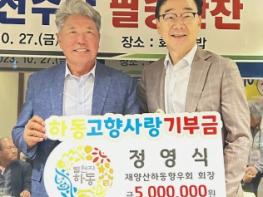 하동군은 악양면 출신 정영식 세영건설 대표이사가 고향사랑기부제의 최고액인 500만원을 기부했다고 30일 밝혔다.