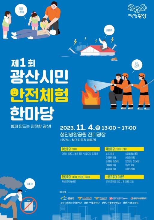 광주 광산구가 11월 4일 쌍암근린공원 잔디광장에서 다양한 재난 및 안전사고 대처 방법을 배울 수 있는 광산시민안전체험한마당을 개최한다.