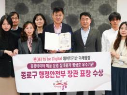 종로구가 '2022년 공공데이터 제공 운영 실태 평가'에서 향상도 우수기관으로 선정, 서울시 25개 자치구 중 유일하게 행정안전부 장관 표창을 수상했다.
