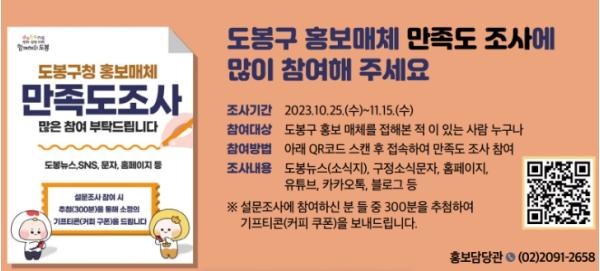 오는 11월 15일까지 진행되며, 도봉뉴스 11월호 마지막 페이지 하단 QR코드를 통해 참여 가능하다.