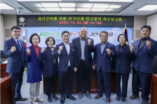 충북 괴산군의회 의원 연구단체 ‘주민이 실감하는 청정괴산 만들기 연구회’는 지난 30일 괴산군의회 소회의실에서 ‘괴산읍 시가지 정비 및 개선 방안’을 주제로 연구용역 착수보고회를 개최했다.
