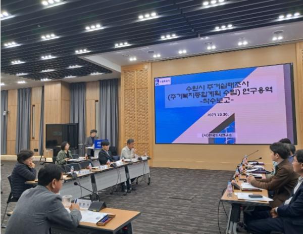 연구용역 착수보고회에는 수원시 관계자, 수원시의회 도시환경위원회·수원시정연구원·수원도시재단(주거복지센터)·수원지속가능발전협의회·수원시지역사회보장협의체(주거복지분과) 관계자 등 20여 명이 참석했다.